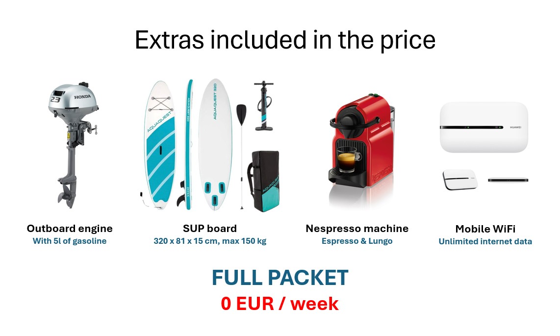 El barco debe regresar a la base antes de las 18:00h con el depósito de combustible lleno antes del desembarque.